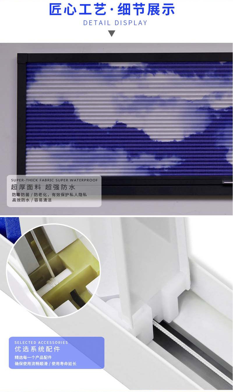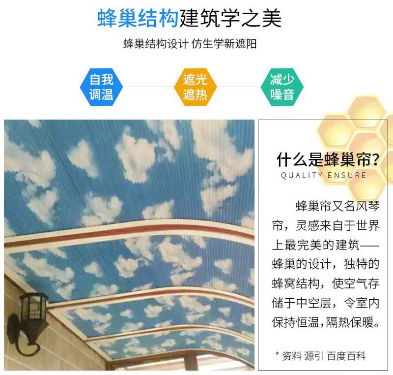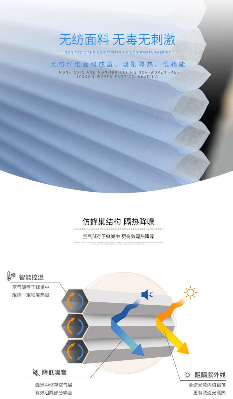 蜂巢簾又名風琴簾,靈感來源與世界上最完美的建筑--蜂巢的設(shè)計,獨特的蜂窩結(jié)構(gòu),使空氣存儲于中空層,令室內(nèi)保持恒溫,隔熱保暖。