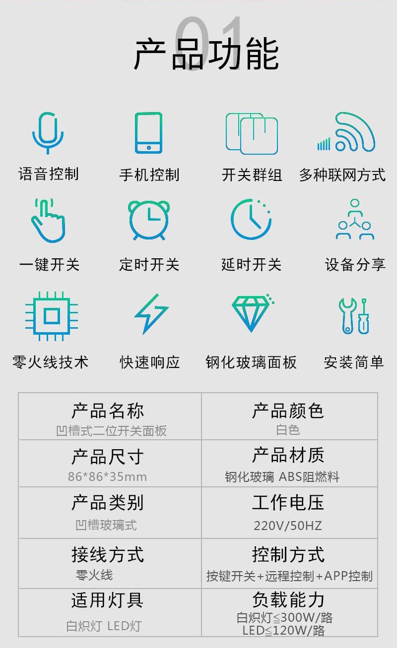 智能觸控凹槽式二位開關(guān)面板_百仕誠(chéng)