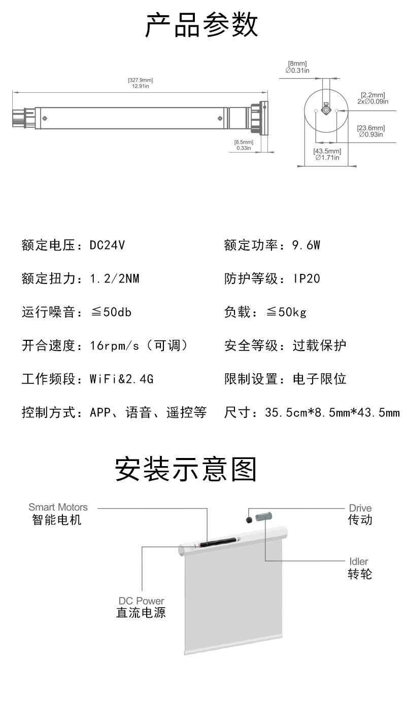 此產(chǎn)品適用于卷簾、柔紗簾、香格里拉簾,改變傳統(tǒng)窗簾手動(dòng)拉升,調(diào)節(jié)遮光的方式,通過語音控制、手機(jī)APP控制、遙控控制等手段,讓您悅享智能生活帶來的便捷與樂趣!