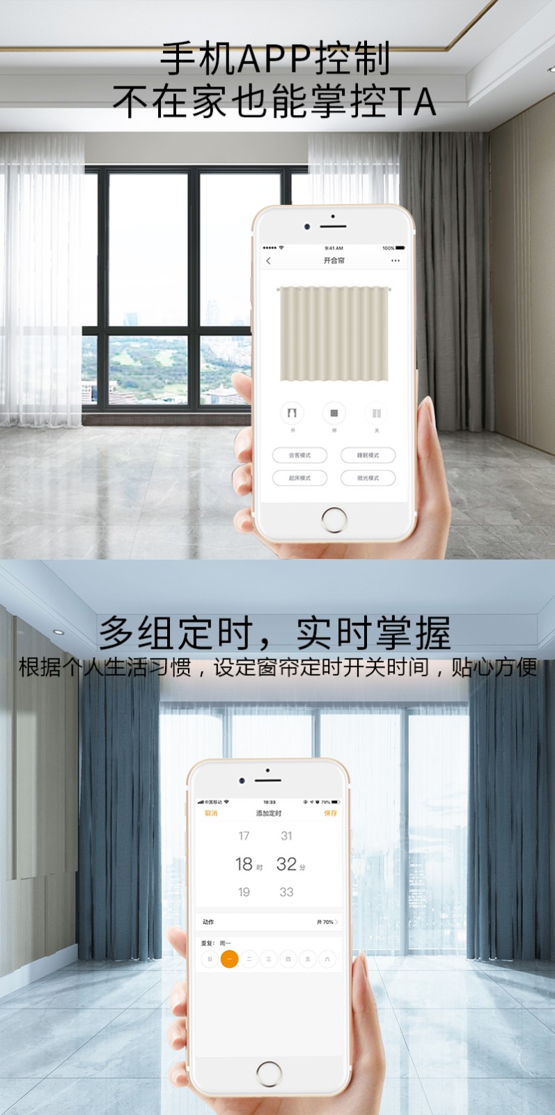 無線窗簾WIFI語音控制神器涂鴉智能電動窗簾伴侶羅馬桿窗簾助力器